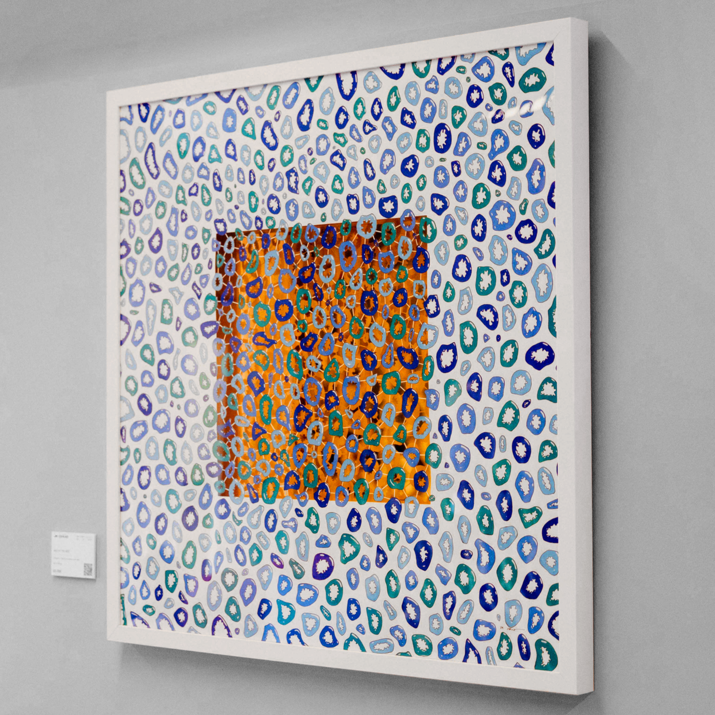 Hand-cut acrylic painting set against golden mirror